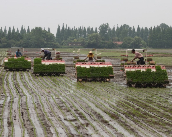 (跃进农业公司水稻机插秧现场) 6月16日,在风和日丽、粽香四溢的端午佳节,上海市副市长胡延照在市农委主任孙雷、光明食品集团领导等陪同下,来到光明食品集团跃进有限公司,视察“三夏”农忙工作,对工作在农忙一线的员工送上了端午节的祝福。 胡延照副市长等领导一行来到跃进新浦大队晒谷场,看到公司员工正在翻晒麦子,便主动上前和员工亲切握手,还和大家一起翻晒麦子;在晒谷现场,领导对跃进农业利用废旧的动力耙自主研发的粮食翻晒机作业效率表示满意,还详细向跃进有限公司领导了解翻麦机节能、省工、效率高等方面的优点,并指示要在员工中进一步开展合理化建议活动,为高效节能、低碳环保做出一份贡献。胡延照副市长等领导还对跃进在“三夏”农忙工作所作的成绩表示肯定,并要求跃进农业要充分利用晴好天气,在梅雨季节来临之前抓紧翻晒粮食,确保丰收果实颗粒归仓。 在水稻精量直播现场,胡延照副市长手捧待播的种谷,向操作人员详细询问了水稻精亮直播的程序,并饶有兴趣地观看了水稻直播田间操作;在有机稻栽培区,四台插秧机正在田间插秧,胡延照副市长上前仔细查看秧苗,并笑谈机插秧与抛秧的趣事。 水稻精量直播和机插秧是跃进农业在水稻高产节能栽培方式上的新探索,是发展现代种植业的新模式。跃进农业今年水稻播栽全部推广高产栽培新型模式,并且实施了秸秆资源全面、全量还田,能有效增加土壤有机质含量,为粮食高产创造有利条件。 副市长胡延照对跃进现代农业近年来取得的成绩表示赞赏。他指出:现代农业要朝着高产、节能、低耗、生态、环保的方向发展。要抓住世博机遇,深化秸秆资源循环利用,全面推广水稻高产栽培新模式,大力发展生态高效农业,成为上海市郊现代生态农业的引领者。 (杨卫国)