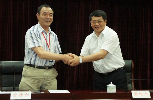 (行政方和工会方首席代表签约握手)